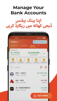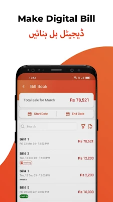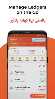 DigiKhata صرف مالیاتی انتظام تک محدود نہیں بلکہ آپ کو بے شمار فوائد بھی فراہم کرتا ہے۔ "Request Money" فیچر کے ذریعے SMS یا واٹس ایپ پر ادائیگی کے لنکس بھیج کر ادھار کی وصولی کو 3 گنا تیز کریں۔ اپنی قیمتی کاروباری معلومات کو PIN کوڈ یا فنگر پرنٹ لاک سے 100% محفوظ بنائیں۔ لا تعداد مفت SMS اور واٹس ایپ یاد دہانیوں کے ذریعے صارفین کو ادائیگیاں بروقت کرنے کی ترغیب دیں۔ ایک ہی کاروباری کھاتے کو ایک سے زیادہ شراکت دار بیک وقت، کہیں بھی اور کسی بھی وقت استعمال کر سکتے ہیں، جس سے ٹیم ورک آسان ہوتا ہے۔ DigiKhata کثیر لسانی سپورٹ بھی فراہم کرتا ہے، بشمول اردو، انگریزی، ہندی، سندھی، عربی اور پشتو، تاکہ آپ اپنی پسند کی زبان میں ایپ استعمال کر سکیں۔ فوری PDF رپورٹس حاصل کریں اور اپنے کاروبار کے لیے مفت ڈیجیٹل بزنس کارڈ بنا کر واٹس ایپ پر شیئر کریں۔ یہ خصوصیات کرانہ سٹور سے لے کر بوتیک، ریستوراں سے لے کر میڈیکل سٹور تک، ہر قسم کے کاروبار کے لیے مثالی ہیں۔