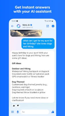 میٹا AI کے ساتھ اپنی تخلیقی صلاحیتوں کو اجاگر کریں، جو آپ کا ذاتی معاون ہے جو فوری جوابات فراہم کر سکتا ہے، مشورہ دے سکتا ہے، ہوم ورک میں مدد کر سکتا ہے اور تصاویر کو تخلیق، ترمیم اور متحرک کرنے میں آپ کی مدد کر سکتا ہے۔ (میٹا AI مخصوص زبانوں اور ممالک میں دستیاب ہے اور مزید علاقوں میں جلد ہی پیش کیا جائے گا)۔ اپنے پسندیدہ تخلیق کاروں کے براڈکاسٹ چینلز میں شامل ہو کر ان کی اندرونی دنیا کا حصہ بنیں اور مستند مواد سے باخبر رہیں۔ اپنی چیٹس کو اپنی شخصیت کا مظہر بنائیں؛ اینیمیٹڈ اسٹیکرز، GIFs، اور مختلف ری ایکشنز کے ذریعے اپنے جذبات کا اظہار کریں۔ چیٹ کے ماحول کو مزید دلکش بنانے کے لیے مقبول فنکاروں اور تہواروں کی تھیمز سے چیٹس کو اپنی مرضی کے مطابق بنائیں۔ میسنجر آپ کے ہر رابطے کو مزید بھرپور اور یادگار بناتا ہے۔