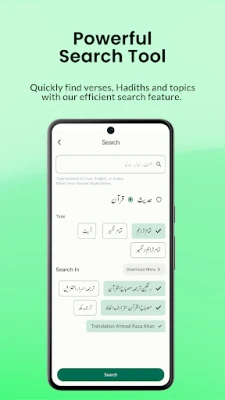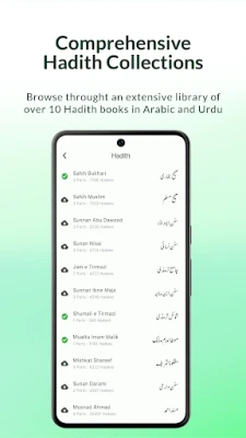 قرآن کے ساتھ ساتھ، یہ ایپ احادیثِ نبوی کے ایک وسیع ذخیرے کا بھی امین ہے۔ اس میں 10 مستند کتبِ احادیث، جن میں 76,000 سے زائد احادیث شامل ہیں، اپنے مکمل ابواب اور عربی متن کے ساتھ ساتھ اردو ترجمے کے ساتھ موجود ہیں۔ خواہ آپ کسی خاص موضوع پر تحقیق کرنا چاہتے ہوں یا کسی آیت یا حدیث کا حوالہ تلاش کر رہے ہوں، 'Easy Quran Wa Hadees' کی طاقتور تلاش کی سہولت آپ کو قرآن اور حدیث کے وسیع مواد میں انتہائی تیزی اور آسانی سے مطلوبہ معلومات تک پہنچاتی ہے۔ یہ سہولت آپ کے علمی جستجو کو مزید فروغ دیتی ہے۔