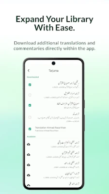 'Easy Quran Wa Hadees' کے ساتھ، آپ 200 سے زائد مستند علمی تراجم اور تفاسیر کا ایک وسیع خزانہ دریافت کریں گے۔ یہ متنوع آراء اور مختلف مکاتب فکر کی گہرائیوں کو سمیٹے ہوئے، ہر آیت کے کئی مفاہیم کو سمجھنے میں معاون ہیں۔ مزید برآں، جو حضرات عربی تلفظ کو بہتر بنانا چاہتے ہیں یا صحیح ادائیگی کے ساتھ تلاوت کی مشق کرنا چاہتے ہیں، ان کے لیے ٹرانسلیٹریشن کی سہولت ایک قیمتی ذریعہ ہے۔ یہ خصوصیت عربی الفاظ کی درست ادائیگی میں رہنمائی کرتی ہے اور آپ کی قرآنی تعلیم کو مزید سہل بناتی ہے۔